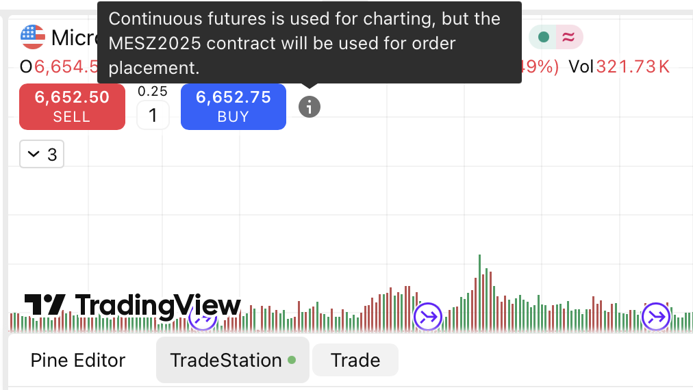 Can I trade a continuous futures contract (e.g. ES1!, ES2!)?