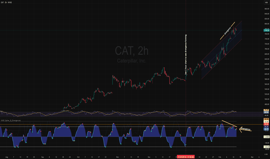 CAT ready to fall?CAT is overbought. Historically on the monthly chart, when CAT is at 75 on the RSI and Momentum oscillator, it usually has a nice correction. There are a few times it continues to 80 on the RSI and momentum oscillator charts. With a few exceptions, there are always big corrections at these levels