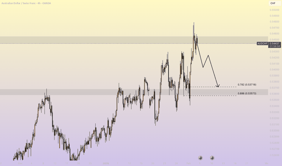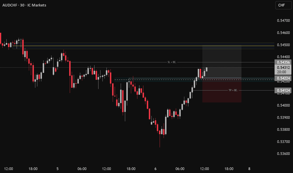 AUDCHF is currently trading near a key technical area where price has previously reacted. The recent move shows slowing momentum, suggesting that the market is deciding between continuation and reversal.