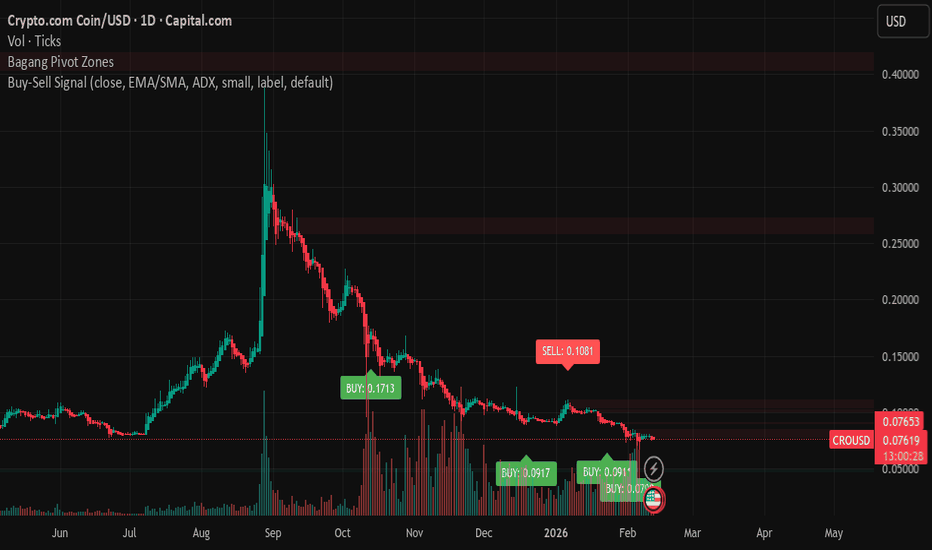 Cronos (CRO) Weekly Chart Analysis: Back at Cycle Lows Cronos is starting to get interesting again from a higher timeframe perspective. When you zoom out on the weekly chart, CRO has a very clear history of sharp cyclical spikes followed by long periods of flat, compressed price action. These expansions typically happen fast, and the retracements tend t