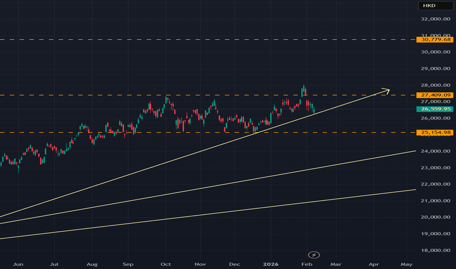 HK50 Trading Idea – Retracement to Support ZoneThe **HK50 chart** is currently showing an interesting setup that deserves close attention. After reaching a swing high around **26800 in mid-November 2025**, the index has started to retrace, pulling back toward a critical **support zone between 26050 and 26150**. This area is not random—it aligns