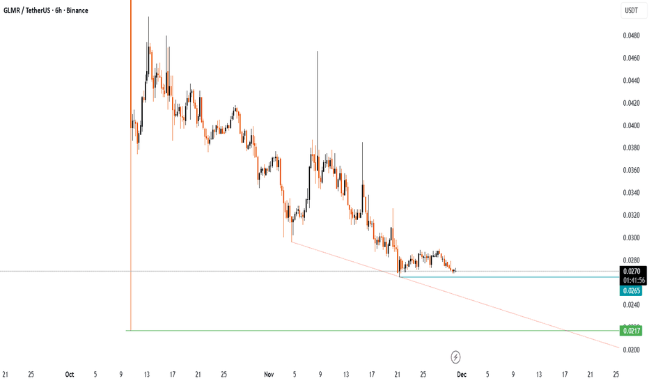 GLMRUSDT Macro Downtrend Intact, Key Levels DefinedGLMRUSDT remains in a firm macro downtrend. The key Main Sell-off zone ($2-$2.61) is the primary resistance to watch for any short to mid-term rallies. Until that area is broken, the path of least resistance is down. The Area of Interest for a potential long-term bottom lies between $0.0.0219 to $0.