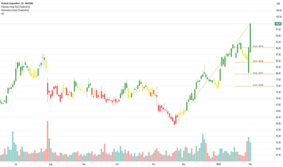 Like other stocks, ARCB shares are traded on stock exchanges, e.g. Nasdaq, Nyse, Euronext, and the easiest way to buy them is through an online stock broker. To do this, you need to open an account and follow a broker's procedures, then start trading. You can trade ArcBest Corporation stock right from TradingView charts — choose your broker and connect to your account.