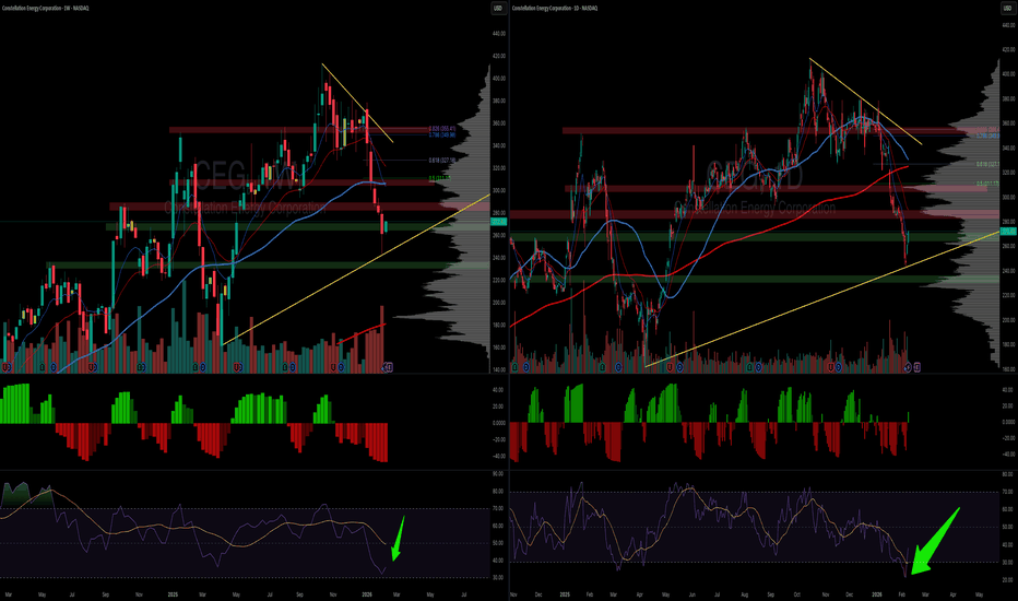 CEG pivot long CEG has had a strong correction as natural gas prices remain low and the market overreacts to earnings per usual. Now that they own calpine they are the largest private energy producer in America. I’ve had an alarm set for 285$ for months and am heavily eyeing this one. Cash secured puts are 1700$ o