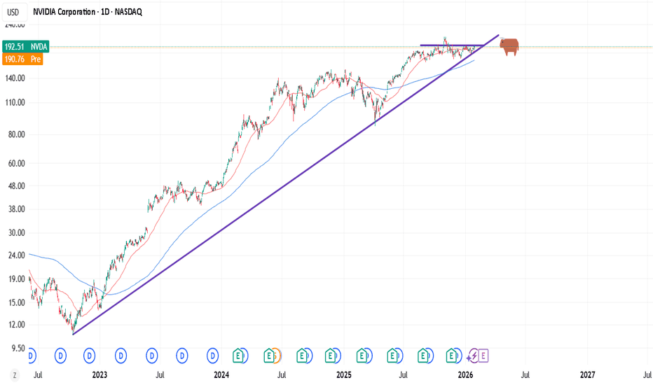 After Nvidia retested major support in mid 2025, we saw another rally of about +125%. But now, Nvidia is rejecting a major resistance trendline and is about to create bearish confirmation. Quite likely that Nvidia wi