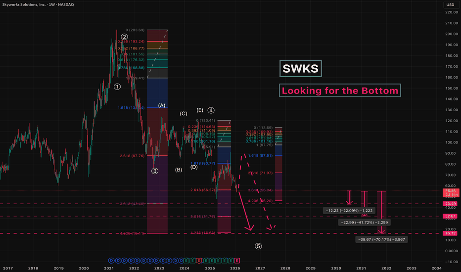 SWKS - Looking for the BottomSince April 2021, a five -wave impulsive decline has been developing.