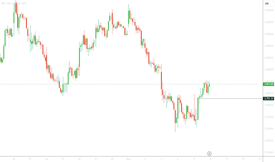 BSE has formed a **5-month long rounded base** and is now attempting a breakout from its pivot zone near 2800. The price has shown a **sustained breakout on high volume**, confirming genuine accumulation and not a false po