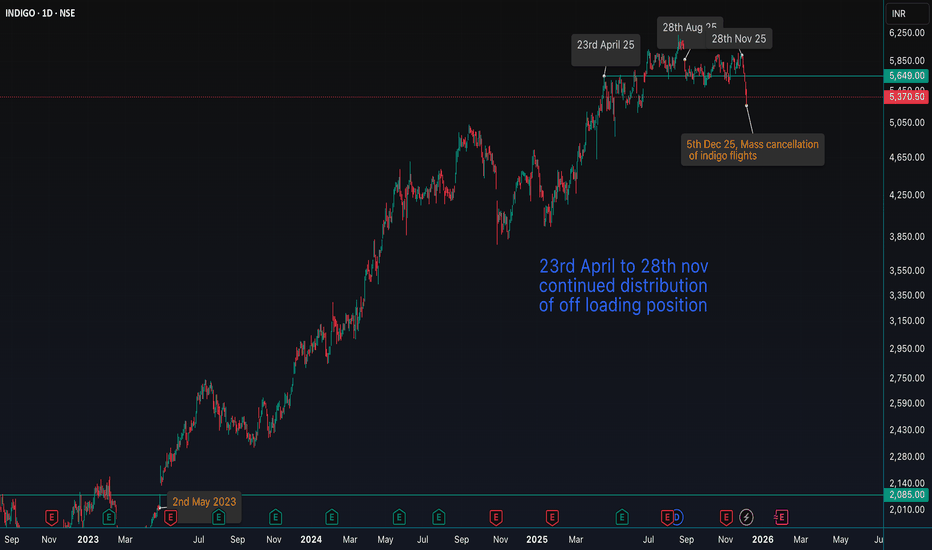 From a trader’s lens, the IndiGo (InterGlobe Aviation) daily chart is telling a very uncomfortable story.