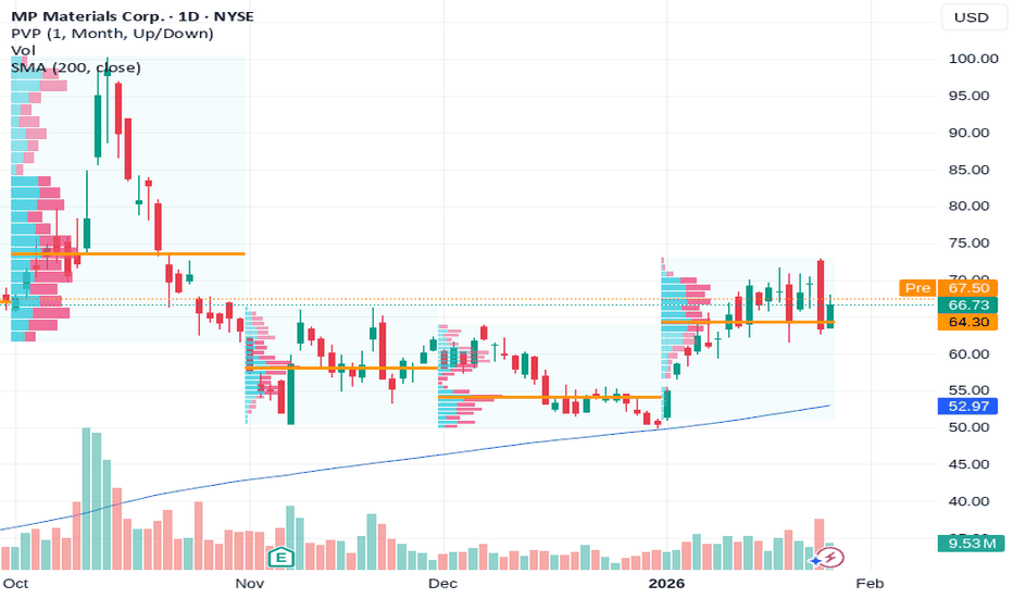 MP: Tight Monthly ConsolidationMP Materials is the premier Western play for Rare Earth magnets. As supply chains tighten, this asset becomes strategically critical.