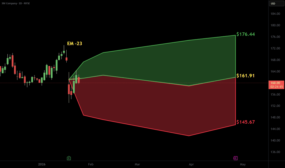 3M: Approaching the Target Zone3M stock has recently traced a zigzag pattern on the chart. In the short term, we anticipate further upside, with shares moving into our Target Zone between $184.42 and $202.51. Within this range, we expect to see the peak of the magenta impulse wave (1). Once this level is reached, a corrective wav