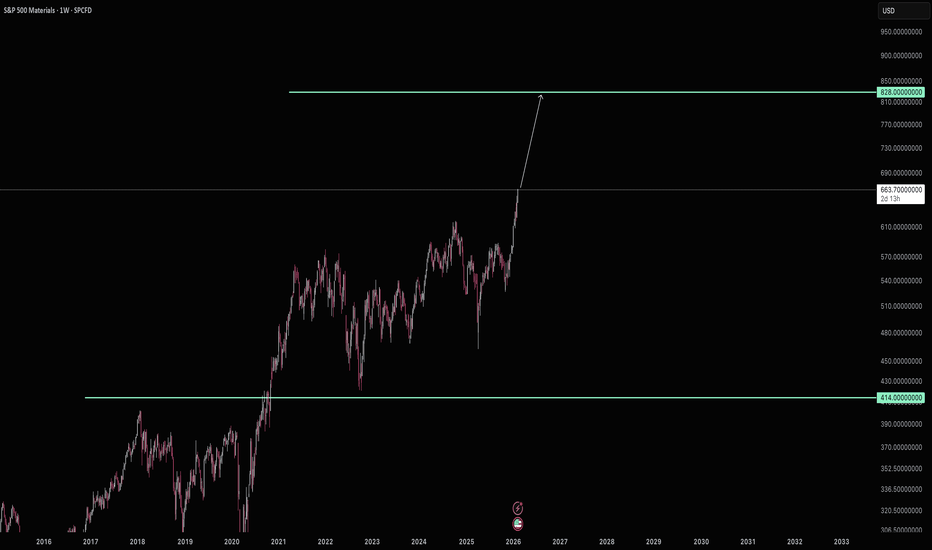Wave 3 in S&P500 materials indexThe S&P 500 Materials index set out an impulse move(1) in October last year and completed the up move move by Jan 2023.