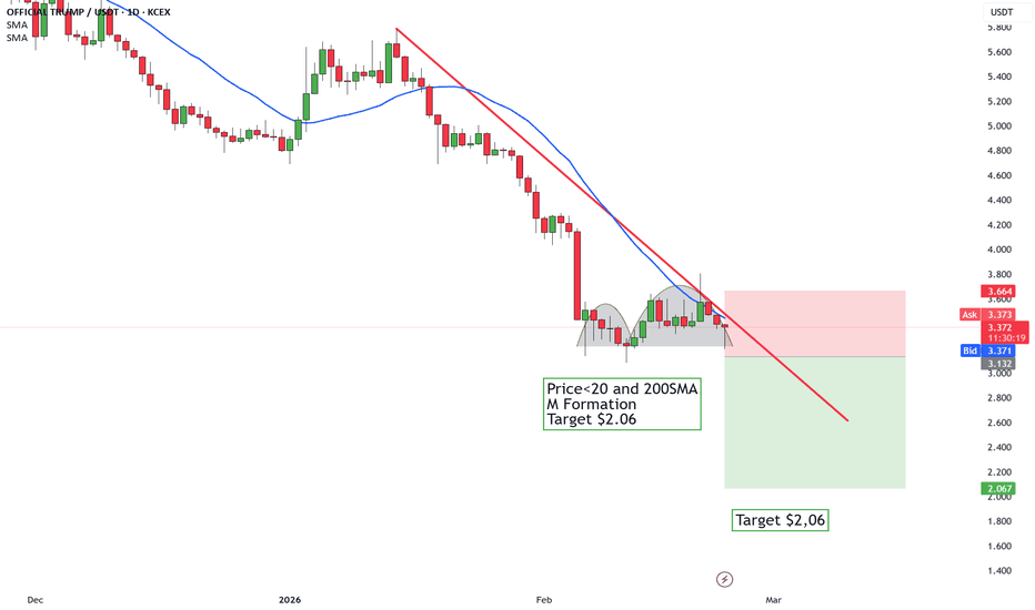TRUMP TOKEN BREAKDOWN — $2.06 TARGET ACTIVETRUMP remains in a bearish structure under both the 20 and 200 SMA with a confirmed M-top pattern, keeping a move toward $2.06 likely.