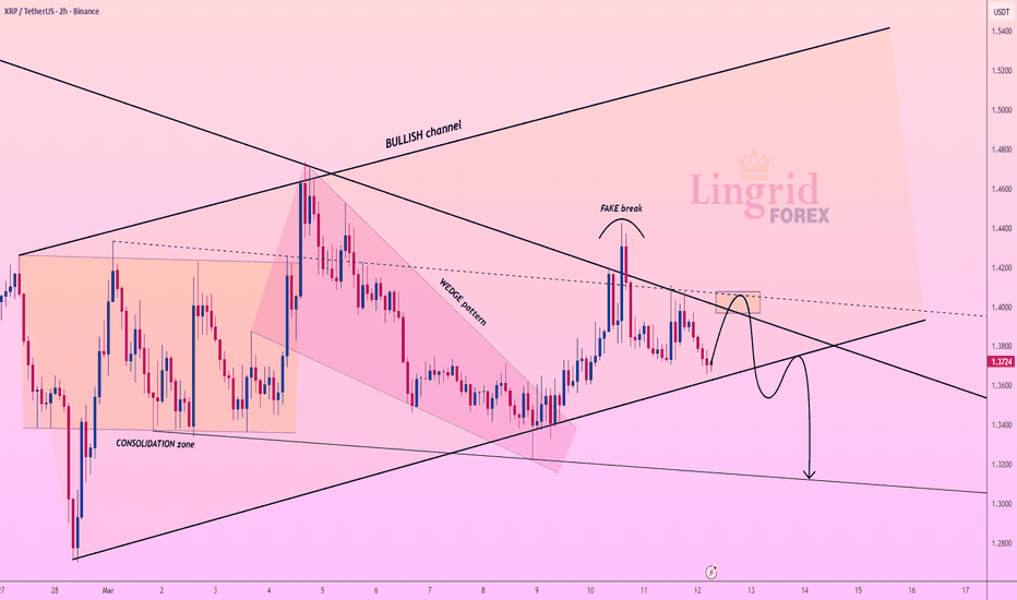 Lingrid | XRPUSDT Price Stuck in a Range With Breakout PossibleBINANCE:XRPUSDT is hovering beneath a descending resistance boundary while the recent bounce appears to be losing momentum. Price is compressing between the falling trendline and the rising support structure, creating a fragile setup where sellers may attempt to regain control.