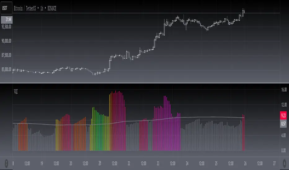 OVERVIEWThe [blackcat] L1 Volatility Quality Index (VQI) indicator measures the quality of market volatility, providing insights into market stability and risk levels. By assessing price fluctuations, VQI helps traders evaluate the current state of the market and adapt their strategies accordingly. Think of it as a tool that gauges the speed of a jump rope, guiding you on when to jump or wait. Similarly, VQI assists traders in deciding whether to enter or exit trades based on market volatility 🎯✅.