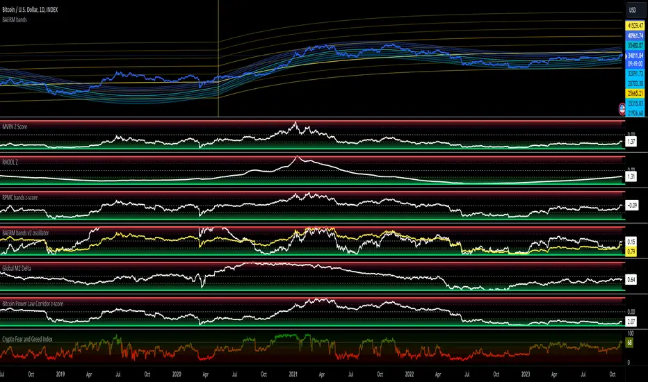 It comprises 2 elements, one overarching the full cycle and a faster moving one which follows the peaks and troughs within the halving cycle.
