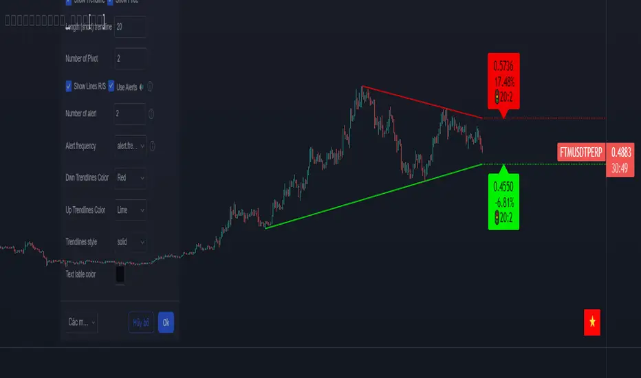 - Clearly show the value of support and resistance lines after the trendline is broken(hiện rõ ràng giá trị của đường kháng cự,hỗ trợ sau khi trendline bị phá qua)