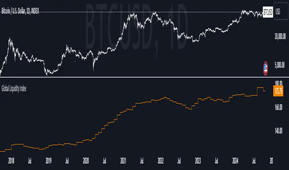 This indicator visualizes global liquidity data. Each bar represents the liquidity level for a given month and year. The y-axis unit is T$.