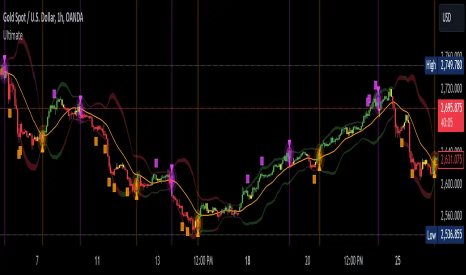 The indicator mainly relies on the RSI indicator with Bollinger Bands for signals. (Though not entirely)