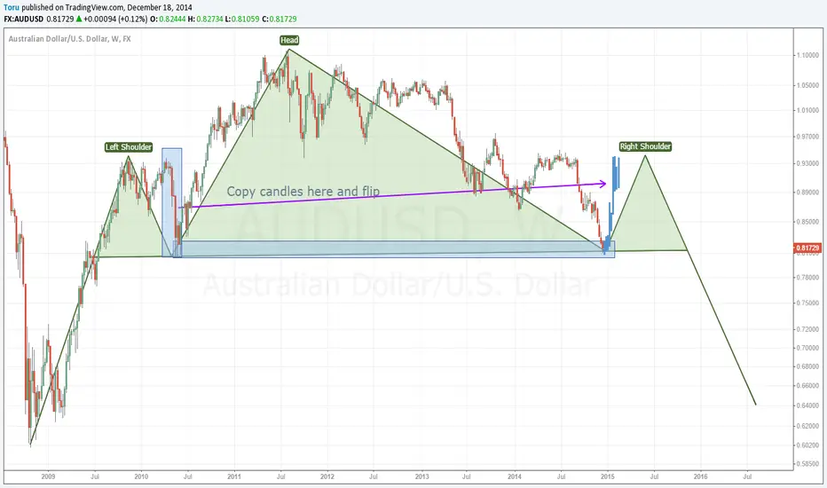 AUDUSD is now in possible support zone creating neck line of possible big head and shoulder pattern. If this pattern is valid, price may bounce back up to 0.93 area to make right shoulder. When the neck line is broken penetrating 0.800 mark clearly, this plan will no longer be valid.