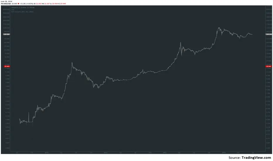 Note: Since this is going to be overlayed onto another chart it will likely be missing weekend data. If anyone knows of a current chart that is 24/7 that has data prior to July 2011 please leave a comment.